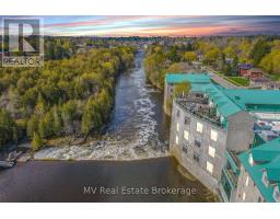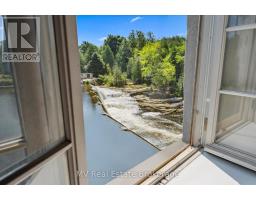 $932.21 MonthlyHeritage Charm Meets Riverside Serenity. A rare opportunity to downsize without compromise: Suite 104 at the Fergus Mill offers unmatched value with **12 months of condo fees included in the purchase**, giving you a worry-free start to homeownership. Set in one of Centre Wellington's most iconic buildings, this ground-level condo blends historic character with modern comfort. It features soaring ceilings, hardwood floors, and oversized windows that frame breathtaking views of the Grand River Falls. Thoughtfully designed for ease and elegance, the spacious 1-bedroom-plus-den layout includes two full bathrooms, a beautifully updated kitchen with high-end appliances, and a cozy fireplace perfect for quiet evenings. Enjoy direct access to scenic walking trails, patios, and tranquil waterfront views. Located just steps from downtown Fergus with its cafes, shops, and restaurants and minutes from the lively village of Elora. Explore nearby St. Jacobs and its famous farmers' market, or head into Kitchener-Waterloo for vibrant city life, all within a 30-minute drive. Stratford's acclaimed theatre district and Lake Huron's cottage country are also nearby for easy escapes. With two parking spaces (including a private garage), a personal storage locker, and pet-friendly amenities, this turnkey suite is truly the complete package. Whether you're retiring, rightsizing, or seeking a peaceful pace of life, this is your front-row seat to nature, community, and timeless architecture. (id:50886)