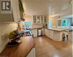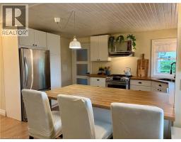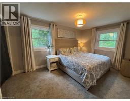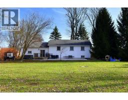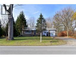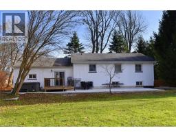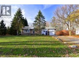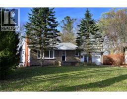 Country living close to town and all amenities! This 3+1, 2.5 bath bungalow on sought after 173 x 300 private mature treed lot. Great curb appeal with brick & vinyl sided exterior with attached garage, ample parking, deck, large patio and private mature treed backyard. Breezeway foyer to open interior layout: kitchen with breakfast bar, stainless steel appliances, spacious living/dining room with electric fireplace, 3 beds, 4 pc main bath & 2 pc guest, basement with family room, bedroom, 3 pc bath, laundry & storage. Enjoy the private yard, deck, new patio (2025), hot tub (as-is) and large lawn area, edged with mature trees. Shed with power. Updates include Furnace Oct 25, Septic 2022, 24-25; windows, weeping tile and waterproofing, concrete patio, some siding, main bathroom, interior painting throughout, interior doors & trim, laminate flooring & carpeting in bedrooms (original hardwood underneath). Possible severance too! RSA (id:50886)