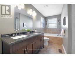 Welcome to this inviting two-storey home in desirable South March, just minutes from Kanata North's thriving hi-tech hub. Designed for comfort and style, this residence features hardwood flooring throughout both levels and a thoughtfully designed layout. The eat-in kitchen offers an abundance of cabinetry with, opening to a deck and beautifully landscaped, low-maintenance backyard accented with river rock and concrete walkways that extend from the front yard. A fully fenced yard provides privacy and space to relax or entertain outdoors. Upstairs, the custom oversized primary suite impresses with a luxurious upgraded en-suite and spacious walk-in closet. The second bedroom opens onto a balcony, while the third bedroom offers generous proportions. The family room features a dramatic vaulted ceiling and a gas fireplace framed by a slate backdrop, creating a warm and inviting focal point. A double-car garage with inside entry adds everyday convenience to this beautifully maintained home. (id:50886)