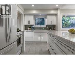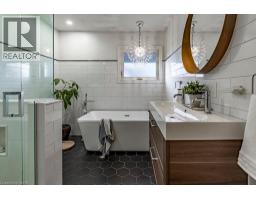 Welcome to this beautifully updated bungalow in Hamilton’s sought-after Westcliffe neighbourhood on the west mountain. Designed with modern living in mind. The open-concept main floor showcases a bright and airy layout, anchored by a classic white kitchen with sleek cabinetry, quartz countertops, and an oversized island with seating. The adjoining dining and living spaces are framed by expansive picture windows, flooding the home with natural light and creating the perfect setting for both everyday living and entertaining. The main level offers three bedrooms (one perfectly styled as a dream fitting room), and a showstopper is the spa-inspired bathroom, where elegant finishes shine—double vanity statement lighting, a glass-enclosed shower with upscale fixtures, and a stunning free-standing soaker tub that invites pure relaxation. The separate side entrance leads to a fully finished lower level, complete with a spacious family room ideal for movie nights or a kids’ play zone, an additional bedroom, powder room, plenty of storage, and even a dedicated “games room”. Outside, enjoy a fully fenced, private yard boasting a deck for summer barbecues, and space for kids and pets to play freely. The double-wide driveway accommodates up to four cars. Nestled on a quiet, mature street, this home offers the perfect blend of style, function, and family comfort in one of Hamilton’s most beloved neighbourhoods. RSA (id:50886)