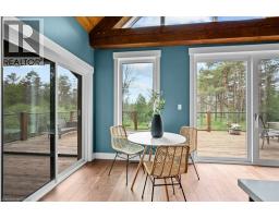 MUSKOKA WITHOUT THE DRIVE! This spectacular custom built home is within a 2.48 acre forested setting! The unique design of this home exemplifies the feeling of a northern luxury chalet! Loaded with high quality building materials and finishes and just built in 2021, this stunning home is a rare offering! The main floor provides an open floor plan with a soaring 20 foot vaulted ceiling framed with gorgeous wood timbers! The gourmet kitchen offers beautiful stainless appliances including an induction cooktop, a large centre island, quartz countertops and beautiful Moroccan style backsplash! A large great room with stone fireplace and dining area provide seamless flow for entertaining and expansive views of the forested backdrop! Step out to the massive deck and screened in room complete with remote retractable walls to increase the deck space for continued opportunity to entertain and enjoy the private surroundings! The main floor also offers a large bedroom/den and a full bathroom for those would prefer main floor living! A separate laundry room with cabinetry and access to the double car garage complete this level. A gorgeous wooden staircase takes you to the upper loft level with an incredible view of the main floor and outdoor surroundings! An office nook in the loft is ideal for those who work from home! An additional bedroom with walk through closet with built-ins and 3 piece ensuite with large walk-in shower serves as a primary retreat! Another hardwood staircase takes you to the walk-out basement with large finished family room with propane stove fireplace and an additional bedroom/den! The attached large double car garage is great for parking and all of your storage needs with loads of cabinets! An additional 19 x 15 detached garage is ideal for the toys and hobbyists! This home is truly stunning and a one of a kind dream private oasis and getaway from the city but is a short drive to Cambridge and Hamilton! Luxury Certified. (id:50886)