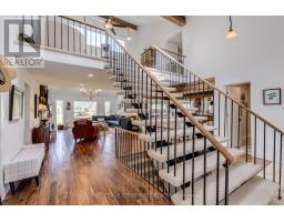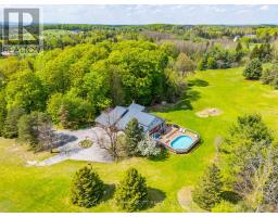Your Country Escape Awaits. Breathe deeply... this is where peace meets luxury. Nestled on nearly 12 acres of rollinghills8 of them thoughtfully groomed this private country retreat blends elegance w/practicality in the most beautiful way. With over 5,400 square feet of beautifully finished living space, there's room here to live expansively & entertain effortlessly. Step inside and fall in love w/ the gourmet kitchen of your dreams. Custom walnut cabinetry,6-burner gas cooktop, built-in oven, steam oven, bronze fixtures, oversized island with prep sink & bar fridge create the perfect setting for everything from weekday meals to holiday feasts. Kitchen flows seamlessly into family room & grand dining area designed for embassy-sized gatherings all grounded by rich, hand-scraped walnut Floors, anchored by rustic wood beams. From here, walk out to sprawling deck made for entertaining & relaxing in total privacy, complete with space for lounging, dining, & soaking in the panoramic views of your own heated pool & peaceful countryside. Downstairs, beautifully finished living space with bedroom, 4 pc bath, laundry, dining room, radiant heated floors throughout, eat-in kitchen, sunlit living area, walk-out to private patio perfect for extended family. Aside from the suite you'll find ample space for yoga, playroom or whatever you can dream up, or as it's current use as oversized bedroom & exercise area and yet another 3 piece bath. Storage has been thoughtfully accounted for. Additional features:* Primary on main* 5 bathrooms* 50-year steel roof* Coveted natural gas service* High speed fiber optics* Satellite TV service available (Shaw, Bell, Rogers)* 2 Laundry facilities* Completely finished save for cold cellar and utility room* Total privacy with convenience just a short drive away This is more than a home. Its a lifestyle refined, relaxed, and ready to welcome you. Come experience the space, serenity, and craftsmanship of 1041 Concession Road. (id:50886)