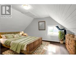 Charming farm style residence boasting a crisp white exterior with contrasting black roof in the quiet village of Mountain, North Dundas. Set on a sprawling 0.98-acre south-facing lot surrounded by nature, the grounds offer plenty of cleared space for gardening or recreation and the soaring trees provide a picturesque backdrop. Bonus detached garage is perfect for the hobbyist! Step inside and be greeted by your foyer and main floor laundry, followed by the eating area. The L- shaped kitchen features granite counters, ceramic backsplash, and plenty of cabinetry for storage. At the back of the home a spacious family room is a great space for entertainment and leads directly to your wood patio overlooking the backyard. Modern 4pc main bathroom with decorative panelled wall, tile floor, vanity with matte black hardware, and tub/shower with white tile surround. Upstairs is the primary bedroom and 2nd bedroom. Fresh cosmetic improvements in November 2025 include painting and wide plank laminate floors on the main level. (id:50886)