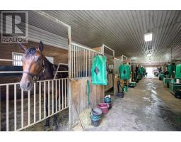 Welcome to a rare 98-acre estate that seamlessly blends luxury living, natural beauty, and income-generating infrastructure, supported by two separate deeds. Whether you're envisioning a family compound, business expansion, or long-term investment, this versatile property delivers the scale, zoning, and revenue potential to bring your goals to life. At the heart of the estate is a newly renovated, custom-built two-storey residence with loft, offering over 5,500 sq ft of refined living space. Designed for both elegance and practicality, it features 6-spacious bedrooms and 7-bathrooms, perfect for multi-generational living or large-scale entertaining. The fully finished walkout basement includes a private entrance, full bath, and kitchenette ideal for guests, in-laws, or a rental suite. Surrounding the home are rolling meadows, mature forests, trails, and a peaceful pond offering unmatched privacy and a strong connection to nature. What truly sets this estate apart is over 45,000 sq ft of indoor infrastructure: nine barns, 175 stalls, 31 paddocks, and two professionally built Standardbred training tracks. This operational facility supports a dedicated client base and offers immediate revenue with room to grow, perfect for entrepreneurs or investors. The inclusion of dual deeds offer rare flexibility for future subdivision, development, or generational planing. Zoned P8, P7, and A2, the property supports a wide range of uses, including equestrian operations, agriculture, storage, events, and retreats. A unique opportunity to own a property that delivers on lifestyle, business, and investment all under two titles. A once-in-a-generation estate that must be seen to be truly appreciated. (id:50886)