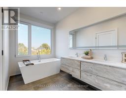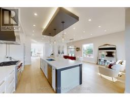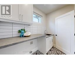 Welcome to 1047 Meredith Avenue, a stunning custom home in Mississauga's Lakeview community, just a short walk to the lake. Offering over 4,300 sq ft of total living space, this home was thoughtfully designed with 10-foot ceilings, a striking 8-foot front door, and a tall custom side entrance door leading to the basement. Inside, the open layout features a chef's kitchen with Wolf and Liebherr appliances, custom cabinetry, and Caesarstone counters, flowing into a dining room with a gas fireplace and a family room with elegant coffered ceilings. Expansive lift-and-slide patio doors open to the backyard deck, taller and heavier than typical sliders, a modern look in luxury homes. A glass wine display, modern glass staircase, and dramatic 3D feature wall create standout moments throughout the home. Upstairs you will find 4 spacious bedrooms, including a primary suite with a built-in closet and spa-like ensuite. The finished basement adds 2 bedrooms, a home theatre with projector, wet bar, tall ceilings, heated bathroom floors, and a walk-out to the yard, plus a second laundry. Additional features include dual laundry areas, integrated linear diffusers for a clean modern look, and custom blinds by the same installer who worked on Drakes residence. Outside, the property showcases a unique exterior with striking 3D stonework paired with stucco for a one-of-a-kind architectural design, a private fenced yard, large deck, and a detached double garage finished with contemporary wood cladding and parking for 6. A perfect blend of modern design, comfort, and convenience in one of Mississauga's most desirable neighbourhood. (id:50886)