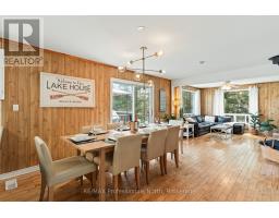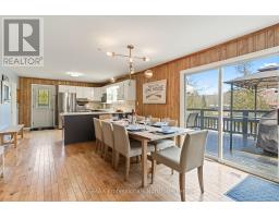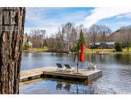 Welcome to your perfect year round family getaway in beautiful Highlands East. Overlooking Grace River which connects to Grace Lake and Pusey Lake(Dark Lake). This charming half acre property is a 3-bdrm, 1-bathroom residence nestled on the shores of Grace River. Step inside to a warm and inviting open concept kitchen, dining area and living room, perfect for hosting family and friends. Walk out onto the spacious deck ideal for summer BBQ's, entertaining, or simply soaking in the tranquil river views. Enjoy great boating, swimming off the dock, with a gentle slope to the water for easy access. Store your boat/fishing accessories in the dry boathouse, access your kayaks, paddle boards from the rack right next to the water. All your water toys are close at hand, this property offers the full lakefront cottage experience. Located on a year-round township road and just 5 minutes to the town of Wilberforce for groceries, LCBO, Agnew's general store for any immediate needs. The garage is a single car garage which has been spray foamed, electric WIFI door opener, it has a heater and can easily be turned into a workshop/art shop any shop. This home sits on a concert block foundation, giving you more storage space for seasonal items. Home comes fully furnished with the exception of staged items. (id:50886)
