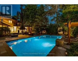 Welcome to this exceptional luxury estate in Shoreacres, steps from the lake - offering over 9,000 sqft of beautifully designed living space.Custom built with impressive curb appeal and meticulous attention to detail. Grand entrance and main staircase welcome you to this thoughtfully designed home that blends relaxed elegance w/timeless design through layered millwork and a purposeful layout. The formal living features coffered ceilings, gas fireplace and double sided aquarium. The grand dining room provides ample space for large family gatherings. A sun soaked kitchen opens into a bright sunroom and walkout to the backyard- ideal for morning coffee or hosting poolside gatherings. Chef's kitchen features a large island, gas cooktop, double wall ovens, oversized fridge, pantry and a built-in bar area with sink. The utility wing is tucked away w/mudroom, garage access, secondary stairs and additional rear yard access. The south facing primary retreat has lake views, gas fireplace,generous walk-in and a spa ensuite. Four additional well-appointed bedrooms enjoy their own private ensuite. The fifth bedroom also features its own rec room with second laundry and sink - perfect for a dedicated in-law or nanny suite. The nearly 3,100 sqft finished basement includes a bedroom with ensuite, bar, wine cellar, theatre room, gym, and ample space for entertaining.The professionally landscaped rear yard features multiple flagstone seating areas, a full size heated salt water pool with automatic cover, outdoor kitchen/ BBQ station, and covered cabana with gas fireplace, all bundled in a Muskoka-like tranquil setting. Elegant, timeless, and serene-this is a rare opportunity to live steps from the lakein one of Burlington's most coveted neighbourhoods. Luxury Certified. (id:50886)