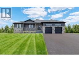Welcome to 106 Maplestone Drive a beautifully crafted, newly built bungalow offering 5 bedrooms (3A/G +2) and 3 bathrooms, set on just over an acre of land & only 30 minutes to Ottawa. From the moment you arrive, the inviting covered seating area sets the tone for the exceptional craftsmanship found throughout. Step inside to a spacious, light-filled foyer with striking black accent walls and elegant marble tile. White oak hardwood flooring flows seamlessly throughout the open-concept main level, leading into a stunning chefs kitchen designed for both function and style.This thoughtfully curated space features quartz countertops, a gas range with a custom wood hood, stainless steel appliances, open shelving, an oversized island with seating, and ample cabinetry AND the window above the sink frames the private backyard, adding a perfect finishing touch! The kitchen flows into a bright dining area & airy living room with vaulted ceilings and a show stopping fireplace set into a custom accent wall. Down the hall, you'll find three generously sized bedrooms, including a primary suite with walk-in closet and a spa-inspired ensuite boasting dual vanities and beautiful tile work. A full main bathroom and convenient main floor laundry complete this level. The fully finished lower level offers exceptional bonus space with large windows that make it feel bright and above grade. It features a sprawling rec room, two additional bedrooms, a third full bath with double sinks, and plenty of storage. Both the basement and attached garage include insulated, radiant-ready slabs. The garage is fully spray-foamed, drywalled, and versatile enough to serve as a home gym, workshop, or studio. Additional features include full spray foam insulation throughout and a water treatment system with reverse osmosis to the kitchen and fridge. Hot water on demand is roughed in and can be changed before close. (id:50886)