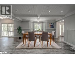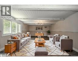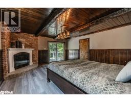WELCOME TO YOUR OWN PRIVATE 3+ ACRES OF MUSKOKA PARADISE WITH A 1400 SQ FT HEATED GARAGE/SHOP, RESORT-STYLE OUTDOOR LIVING, & RUSTIC CHARM! This 3+ acre retreat showcasing a Muskoka-style landscape with rock outcroppings, abundant wildlife, and a private forested EP backdrop, all located just 5 minutes from Hwy 400 and the Oak Bay Golf Club, under 10 minutes to marinas, and close to all everyday essentials. Enjoy year-round recreation with Mount St. Louis and Horseshoe Valley Ski Resort less than 30 minutes away, while Orillia, Barrie, and Midland are within 35 minutes for urban amenities. The 2-storey brick home boasts dramatic rooflines, stamped concrete walkways and steps, and a welcoming full-width covered front porch. The 1,400 sq ft insulated and heated garage is a standout with 13+ ft ceilings, radiant heat, compressed air lines, a paint spray booth, overhead storage, office and loft space, and multiple access points including dual garage doors, an oversized roll-up rear door, a side man door, and interior entry. Outdoor living shines with a patio and screened pergola, a powered tiki bar and firepit, a two-tiered deck with covered storage below, and a garden shed with a wood storage overhang, all complemented by a 5-zone irrigation system. The open kitchen, dining, and living area features a walkout to the back patio, plus a pantry, family room, and a renovated bathroom with heated floors, granite counters, and a steam shower. The upper level offers 4 bedrooms, including a primary retreat with a walk-in closet, fireplace, and a walkout to the deck, paired with a second full bathroom with heated floors and granite counters. Shiplap-style ceilings with faux wood beams add character, while thoughtful upgrades include vinyl and tile flooring, modern door hardware, fresh paint, and updated electrical. From the striking exterior to the thoughtful interior finishes, this one-of-a-kind #HomeToStay promises a life of natural beauty, convenience, and endless enjoyment. (id:50886)