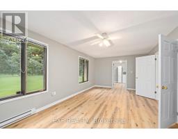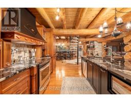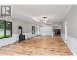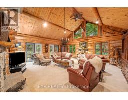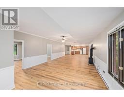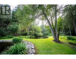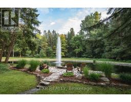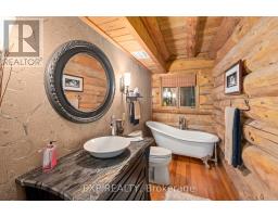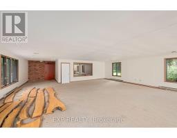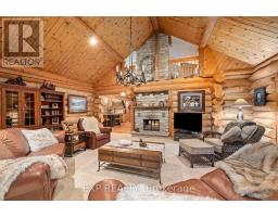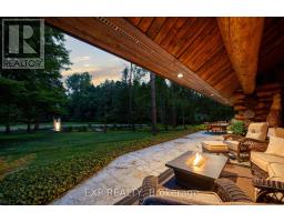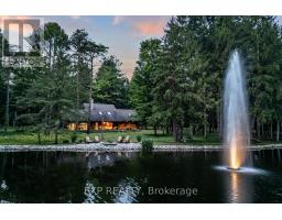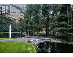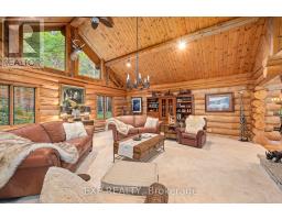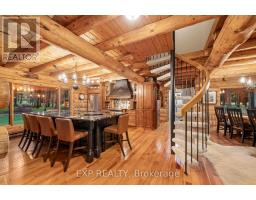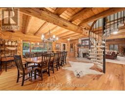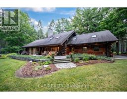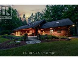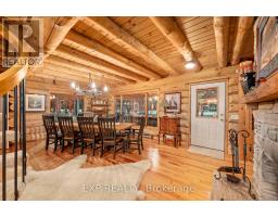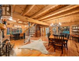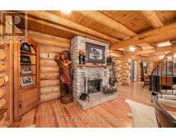 Hidden down a private tree-lined driveway deep in the Carolinian forest on the edge of London and minutes from Delaware, this one-of-a-kind property offers TWO HOMES with a combined 6,300 sq. ft. of finished space. Situated on 42.4 acres of private bush and lush forests, the property features interconnecting trails that lead down a ravine to Dingman Creek. At the back of the property, a magnificent log home overlooks various ponds with a stunning fountain that glows at night. Every window offers priceless views, and the front of the home provides peaceful tranquility. The log home is exceptionally well-built, featuring two staircases and a vaulted two-story great room with a mirrored fireplace into the formal dining room. The kitchen has been tastefully redesigned with beautiful wood cabinets and granite countertops. The second level offers three spacious bedrooms and a versatile primary suite with a dressing room that could be converted into a fourth bedroom, walk-in closet, or ensuite.The home at the front of the property is separated into two parts: one side is a sprawling ranch-style home with three bedrooms potential for a 4th and a private patio, while the other side offers a separate space with endless potential. This first home is completely hidden from the back home, set off to the side and surrounded by lush forest. This property feels like another world, with deer spotted several times a day, wild turkeys that roam and graze, and flying squirrels gliding from branch to branch. The trails, beautifully maintained, run all the way down to the river. There is even a fully finished hunting shack, high up on posts and lined with cedar and wood floors, perfect for wildlife watching or hunting. There is a look-out point at the back of the property with breathtaking views of the river. Situated on the edge of London and Delaware, this location cannot be beat and is extremely hard to come by. (Both houses, bedrooms and bathrooms are combined) (id:50886)
