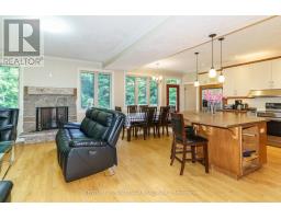 This 5(4+1) bedrooms (3442 sqft living space), 3 Full Baths Open Concept upgraded home has so much to offer to so many different buyers. Built by a well-known and respected local builder, you see the quality as soon as you enter. New hardwood floors (2023 2nd level) perfectly compliment the open area with dining areas, living room with fireplace, an oversized kitchen island with an amazing large "gathering" kitchen area. This open concept kitchen area also features a walk out to the back deck and backyard. Going up a few handcrafted steps you will find 4 very well sized bedrooms with a 4 piece bathroom and an amazing huge master suite bedroom with a large walk in closet And additional his and her closets beside a 4-pc ensuite washroom with a laundry chute. The quality continues to the lower level when you walk into the perfect family room with LOTS of windows Making it very Bright and an additional walk out to the other side yard, large bedroom and Huge storage area! The lot is very private with a rock bluff beside the home and Newly Installed Hot Tub. Septic System upgraded for 12 people. (id:50886)