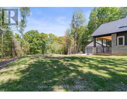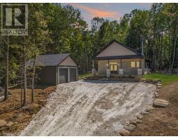 1076 Angel Road | Eagle Lake New Build | 3 Bed | 2 Bath | 1.84 Acres Nestled in the heart of the Eagle Lake community, just minutes from Sir Sam's Ski Hill, this brand-new 1,645 sq ft bungalow offers the perfect balance of modern design & natural tranquility. Set on 1.84 wooded acres, this home is a private retreat surrounded by towering trees, fresh air, & four-season adventure right at your doorstep. From the moment you arrive, the clean lines & welcoming charm of the covered front porch invite you inside. With a pine ceiling, pot lights, & timber posts, this space sets the tone for warm evenings with friends or quiet mornings with coffee in hand. Step inside to soaring 10-foot ceilings & an open-concept layout that feels bright and spacious. The living room is anchored by a floor-to-ceiling stone fireplace, creating a cozy gathering space for snowy winter nights. The kitchen is a showpiece, featuring a waterfall island, custom lighting, & walkout access to the outdoors. Thoughtful details are found throughout sound insulation for quiet living, USB plugs, hallway nightlights for convenience, & central vac for easy living. This home includes 3 bedrooms & 2 full baths, each with modern finishes. The primary suite is a relaxing retreat, complete with a stylish ensuite & walk-in shower. Comfort is at the forefront with forced-air propane heating, central air, drilled well, & septic system. Outside, you'll love the detached 2-car garage for storing vehicles & toys, plus a backyard fire pit area, the perfect spot for making memories under the stars. Trails wind through your very own forested property, giving you privacy & connection to nature while still being close to amenities. Whether you're looking for a full-time residence or a weekend getaway, this property checks every box: space, style, & setting. 1076 Angel Road, Eagle Lake, modern country living in the Haliburton Highlands. *Some images have been virtually staged/altered/rendered* Taxes Not Yet Assessed* (id:50886)