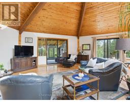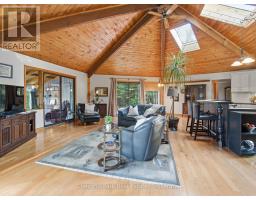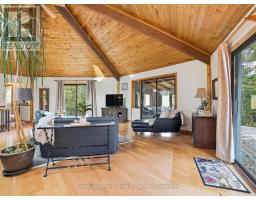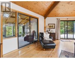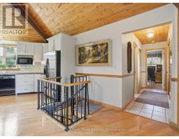 Welcome to your peaceful Muskoka retreat on the beautiful Muskoka River. This year-round home sits on a wooded lot filled with White Pine, Oak, and Maple, offering excellent privacy and a serene natural setting. With approximately 200 feet of river frontage and a creek bordering the east side of the property, there are endless vantage points around the property to take in the incredible views. Enjoy relaxing days in the screened-in gazebo near the water or explore the many natural sitting areas along the shoreline.Inside, the open-concept layout is highlighted by an impressive octagon-shaped ceiling with skylights, filling the main living area with natural light. Hardwood floors run throughout the main level, adding warmth and character. Off the family room, a bright sunroom with river views and a propane stove offers a cozy year-round living space. The primary bedroom features its own sunroom with peaceful garden views, creating a quiet and private retreat.The lower level is fully developed and includes a second propane stove, a spacious workshop, and plenty of storage. Outside, you'll find a 12' x 12' bunkie for guests, tandem garages ideal for trailered boat storage, and a compacted crushed gravel parking area with space for up to six vehicles. A Generac backup generator provides added peace of mind, and year-round access is convenient with a paved municipal road leading right to the property.Whether you're seeking a full-time residence or a four-season getaway, this property blends comfort, thoughtful design, and the natural beauty of Muskoka living. (id:50886)