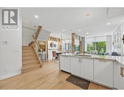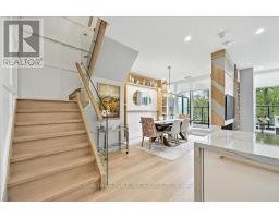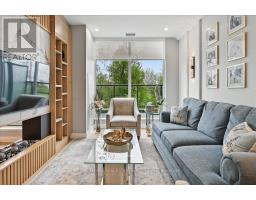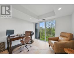 OVER $100K IN CUSTOM UPGRADES! RAVINE-VIEW EXECUTIVE TOWNHOME! TWO SIDE-BY-SIDE PARKING SPACES! Discover the perfect blend of luxury and tranquility in this impeccably designed two bedroom plus spacious den townhome, where every detail reflects sophistication and comfort. Set against a serene ravine backdrop, this residence offers inspiring views that create a rare sense of calm and connection to nature within the city. Rich oak hardwood floors flow seamlessly throughout, enhanced by designer wallpaper that adds texture and visual interest. The chef's kitchen impresses with premium Miele appliances, a generous pantry, and an elegant balance of form and function. Over $100K in custom upgrades elevates the home's character, including a bespoke wall unit, sleek central fireplace, built-in dining cabinetry, refined crown moldings, and a striking staircase with glass panels and artistic detailing. The versatile den with its own ensuite bathroom adapts easily to your lifestyle - ideal as a guest suite, home office, or third bedroom. Upstairs, spa-inspired bathrooms showcase upgraded backsplashes, statement mirrors, and contemporary finishes. Designer chandeliers and sconce lighting create a warm, inviting ambiance throughout. Thoughtfully curated and beautifully finished, this residence is more than a home - it's a private retreat of style, comfort, and inspired design. (id:50886)