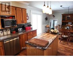 Welcome to this beautifully updated 4-bedroom raised bungalow, nestled just five minutes from the lovely town of Bancroft an ideal retreat for families craving space, comfort, and nature. The heart of the home is a spacious kitchen and dining area, tailor-made for culinary enthusiasts. Outfitted with sleek stainless steel appliances (fridge, stove, and built-in dishwasher), it offers generous cabinetry and a large peninsula perfect for prepping meals or gathering with loved ones. Downstairs, the expansive recreation/family room invites relaxation and entertainment, featuring a chic bar and a cozy propane fireplace set against a striking stone hearth. This level also includes the fourth bedroom, a handy 2-piece bathroom, a workshop, and a utility/storage room to keep your home organized and clutter-free. An attached garage adds everyday convenience. Step outside onto the oversized deck off the dining area and take in the serene views of lush greenery and peaceful wilderness an ideal setting for hosting summer barbecues or enjoying quiet mornings. This property has had over $60,000 in Upgrades! This move-in-ready gem has been thoughtfully enhanced with:- New windows and patio door (2024)- High-efficiency propane furnace and fireplace (2022)- Updated appliances including stove and refrigerator (2021)- New hot water tank (2024)- Stylish deck (2022)- Recycled asphalt driveway (2022)- Upgraded submersible water pump for the well. Whether you're looking to settle down or escape the city, this property offers the perfect blend of modern amenities and rustic charm ready to welcome your family home. Don't miss out on this exceptional opportunity to embrace country living at its finest! (id:50886)