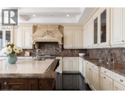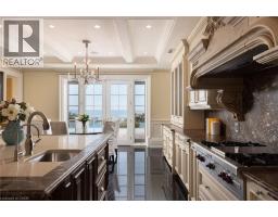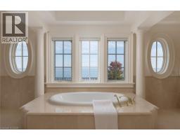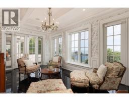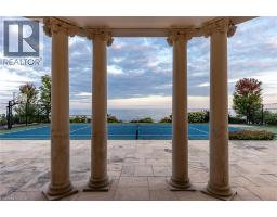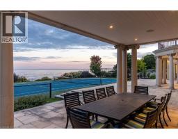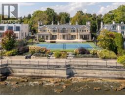 Commanding a prized stretch of Lake Ontario shoreline in prestigious South East Oakville, this Hicks-Pettes–designed estate defines European elegance and modern grandeur. A limestone façade with stone pillars, slate roof and copper detailing signal architectural pedigree of the highest order. Behind the gated, heated circular drive and stately covered porch, more than 14,000 sq. ft. of elevator-served luxury unfolds. From the moment you enter, panoramic lake vistas sweep across every principal room, creating an unforgettable backdrop for both intimate family life and grand entertaining. Radiant-heated marble floors and a soaring 22-foot illuminated barrel ceiling set a tone of sophisticated drama. Formal living and entertaining salons, each with hand-carved stone fireplaces, open to expansive lake-view terraces, while the sun-filled solarium captures year-round vistas of the tennis court and shimmering water beyond. A chef’s kitchen with separate caterer’s prep area balances everyday ease with gala-scale hosting. Completing the main level, a richly paneled library provides a quiet, distinguished retreat for work or reflection. Five lavish bedroom suites—each with private ensuite—include a primary sanctuary with spa-inspired bath and private lake-view balcony. The lower level becomes a private club: temperature-controlled wine cellar and bar, theatre, banquet hall, gym, nanny suite and second laundry. Outdoors, French-inspired gardens, sound-equipped terraces and a full tennis court embrace the lake’s breezes and golden sunsets. This is Oakville’s ultimate lakefront legacy residence—where unrivalled, world-class vistas from every principal room meet architectural mastery and resort-style amenities to create a property of true international calibre. Luxury Certified. (id:50886)