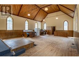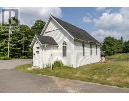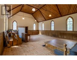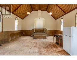 Discover the unique charm and endless possibilities of this former church, ideally located at the corner of Highway 118 and Stanhope Airport Road. This distinctive property has been thoughtfully rezoned for residential use and is ready for its next chapter. Step inside the open-concept main level where you're welcomed by a bright entryway or mudroom that leads into the stunning former chapel. This space is filled with character, featuring soaring cathedral-style wood ceilings and breathtaking stained glass details in the arched windows, a beautiful nod to the buildings historic roots. The lower level offers high ceilings and remains unfinished, providing a blank canvas for additional living space, studio, or storage. A wide staircase at the rear of the building, once home to the original church washrooms, leads to a back entrance and a fenced yard. Set on a flat and manageable lot, the property includes a newer propane furnace, a drilled well, and a holding tank. Conveniently located between Haliburton and Minden, and just minutes from West Guilford, you'll enjoy easy access to amenities while enjoying a quiet and unique setting. Bring your vision and transform this one-of-a-kind space into your dream home, studio, or creative retreat. (id:50886)