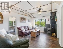 Welcome to Your Medora Lake Escape! Nestled on the peaceful shores of beautiful Medora Lake, this charming 3-bedroom, 1-bathroom, 3-season cottage offers the perfect Muskoka getaway. Lovingly renovated over the past four years, this property blends rustic charm with modern comforts - and its turn-key, ready for new owners to enjoy right away. Step inside to find bright, open living spaces featuring LVP flooring (2022), a cozy WETT-certified woodstove, and baseboard heating for those cooler nights. The kitchen is both stylish and functional, complete with a live-edge walnut breakfast bar, apartment fridge (2024), and space for cooking. The updated bathroom (2023), stacked washer/dryer, hot water tank (2022), and full-size fridge in the laundry room add comfort and convenience - because cottage weekends deserve extra room for snacks and summer drinks! Enjoy your mornings in the indoor sauna, lazy afternoons on the deck with patio area off the kitchen, and evenings by the lakeside firepit under Muskoka's famous starry skies. The waterfront is ideal for all ages - gentle wade-in access from the shore or a deep-water swim off the dock, complete with floating and fixed dock decking (2022), a dock extension (2022), and a new swim dock and metal roof (2025). A bunkie provides extra space, and the new steel shed (2025) keeps all your gear organized. Located just minutes from both Bala - home of the beloved Cranberry Festival - and Port Carling, the vibrant hub of the Muskoka Lakes, you're perfectly positioned to explore it all. Walk to Johnston's Cranberry Marsh & Muskoka Lakes Winery, hike Hardy Lake Provincial Park, stargaze at Torrance Barrens, take in a concert at The Kee or spend a fun-filled day at Bush's Bala Waterpark. This is a true Muskoka retreat - private, peaceful, and surrounded by natures beauty. Whether you're seeking a weekend getaway or a family cottage to make memories for years to come, this Medora Lake gem is ready to welcome you home. (id:50886)