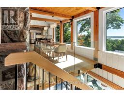 Welcome to 11 Crestwood Drive, an extraordinary example of craftsmanship and architectural excellence. This iconic timber frame home, built from 150-year-old Douglas Fir beams and completed in 1981 by engineer and architect Gary Wismer, offers a blend of historical charm and modern luxury. The home boasts breathtaking water views from every level and room, including a panoramic view from the garage, an absolute must-see! This meticulously updated residence showcases careful restoration and high-end finishes throughout. The extensive landscaping, expertly designed by HardRock Landscaping of Barrie, enhances the property's natural beauty. The lower-level basement is a haven of relaxation and indulgence, featuring a spa-like three-piece bathroom, a custom display walk-in closet, and a fully prepared wine cellar. In 2021, the home underwent a complete mechanical upgrade, including a new furnace and air conditioning system, ensuring comfort and efficiency. Attention to detail is evident in every corner, from the elegant James Moder chandeliers and wall sconces to the custom Thermory Ash lumber decks, which adhere to Wismer's original plans and are complemented by stunning 12mm glass railings. Whether you're enjoying a movie night or a quiet evening on the deck, you'll appreciate the unobstructed views that enhance this home's unique and inviting atmosphere. This property is not just a home; it's a masterpiece waiting to be enjoyed. The third bedroom disclosure: he house is listed as a 3-bedroom as it originally was. My clients, a professional couple, did not need the third bedroom in the lower level, and opened the separating wall during the renovation process. If a buyer needs the third bedroom, my clients offer to restore the lower level to its original layout at their own expense before closing. (id:50886)