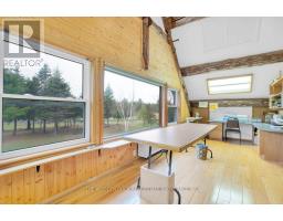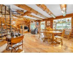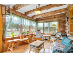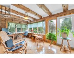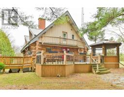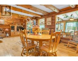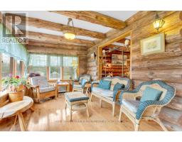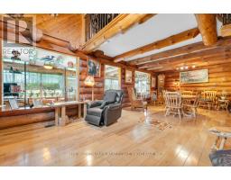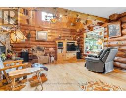 Tucked away on a beautifully treed lot just south of Madoc, this unique round log home offers a peaceful retreat with rustic charm and thoughtful features throughout. With three bedrooms and one and a half bathrooms, theres room for the whole familyplus space to unwind and enjoy the natural surroundings.The main floor welcomes you with an open-concept layout featuring a warm, inviting eat-in Custom kitchen for casual family meals and gatherings. A stunning two-sided gas fireplace provides warmth and ambiance to both the kitchen and the spacious living room. A large sunroom offers panoramic views of the property and makes a perfect all-season space to relax. A two-piece bathroom and convenient laundry room complete the main level.Upstairs you will find three bright bedrooms, a full ensuite bathroom, and a second sunroom flooded with natural light perfect for a 4th bedroom, playroom, or home office. In addition a spacious loft overlooks the living room below adding character and architectural flair. Outside enjoy a large deck and a screened-in gazeboperfect for entertaining, dining, or simply enjoying peaceful evenings outdoors. The outdoor living space overlooks the beautifully maintained yard, offering a serene view and plenty of room to roam. Outside, a massive workshop offers endless possibilities for hobbyists or storage needs, and a separate single-car garage adds extra functionality.If youre seeking tranquility, charm, and space to live and grow, this property is a must-see. (id:50886)