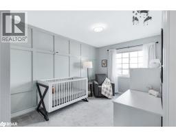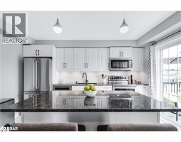 Welcome to This Stunning Freehold Townhome in One of Barrie's Most Desirable Communities! This beautifully maintained 6 Year Old home is truly move-in ready, perfect for first-time buyers or those looking to downsize without compromise. Step inside to an open-concept main floor featuring a spacious family room, kitchen, and a den, that comes complete with stylish built-in cabinetry and a beverage fridge, ideal for effortless entertaining. No detail has been overlooked with premium upgrades throughout, including KitchenAid stainless steel appliances, elegant laminate flooring, a large centre island with a granite countertop, upgraded cabinet and door hardware, pot lights, and chic decorative wall trim. On the Upper Level you'll find two generously sized bedrooms. The primary suite offers a walk-in closet with custom built-in organizers and a semi-ensuite, while the second bedroom also features thoughtfully designed closet organizers. Enjoy outdoor dining and morning coffee on your large private balcony, accessible directly from the kitchen. Additional conveniences include inside entry from the garage to a ground-floor laundry room with a 2-piece bath and extra storage, plus an extended driveway accommodating parking for two vehicles. This is low-maintenance living at its best, all just minutes from Hwy 400 and 27, shopping, parks, fabulous restaurants and schools. Simply move in and start enjoying everything this fabulous home and location have to offer! (id:50886)