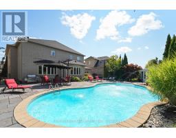 Welcome to this meticulously maintained detached 2-storey home, perfectly situated on a private and exclusive street overlooking a beautiful parkette and green space. Offering 3,534 sq. ft. above grade with 4 bedrooms, 4 bathrooms, main floor office, this residence combines elegance, comfort, and functionality. The exterior is professionally landscaped with mature trees, two serene water features, inground irrigation system, and a stunning saltwater heated pool (3' - 8' depth) with three cascading waterfalls creating your own private backyard oasis. Inside, youll find spacious principal rooms and an open-concept kitchen with a center island, stone countertops, built-in desk, stainless steel appliances, and direct flow into the living area featuring a custom wall unit and cozy gas fireplace. Elegant dining room leading to 2 storey living room perfect for entertaining. Open oak staircase with wrought iron balusters. Hardwood flooring, crown molding, pot lights throughout and custom walk-in closets in all bedrooms elevate the homes style and practicality. The primary retreat boasts a walk-in closet and a luxurious 5-piece ensuite. New countertops in all bathrooms, upgraded hardwood on the second level and new front door/entry way. Security system with cameras. Parking is never an issue with a 3-car tandem garage and room for 5 more on the driveway8 total spaces. This rare offering blends luxury, privacy, and convenience, all in an exceptional setting. (id:50886)