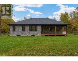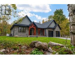 New custom-built home in the Buckhorn/Lakehurst area with deeded lake access to Pigeon Lake and the Trent System, being offered by the Builder, inclusive of Tarion New Home Warranty. This exceptional 2,036 sq ft bungalow offers 3 spacious bedrooms, 2 modern bathrooms and an oak staircase with black pickets leads to a full unspoiled basement with large windows awaiting your personal touch. Set on a private 0.80-acre lot surrounded by mature trees, this property provides ultimate privacy and tranquility. With lake access right from your backyard, you can walk to the water, soak in the waterfront lifestyle and the Seller is providing a 10 ft dock. The homes exterior showcases a striking combination of brick and stone, complemented by black trim accents and is framed by the natural beauty of the surrounding trees. A charming 22 ft covered front veranda with timber-frame construction and a beautifully crafted stone walkway invites you inside. At the back, a covered deck off the dining area offers a perfect spot for outdoor entertaining. Step inside to an open-concept layout filled with natural light. High ceilings, pot lights, engineered hardwood flooring and elegant porcelain tile set the tone throughout. The heart of the home is the stunning white kitchen, featuring black hardware, stainless steel appliances, quartz countertops and a stylish matching backsplash, all anchored by a large island with breakfast bar. The adjoining dining area and great room flow seamlessly, creating the ideal space for family gatherings. The thoughtfully designed layout places two secondary bedrooms and a main bath on one side of the home, while the luxurious primary suite, complete with a 5-piece ensuite and walk-in closet, enjoys privacy on the opposite side. Additional conveniences include main floor laundry with direct access to the attached double garage, which is fully drywalled and painted. (id:50886)