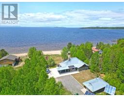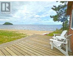 Nestled on the pristine shores of Lake Nipigon with over 125 feet of sandy beachfront, this one-of-a-kind 4-bedroom, 2-bathroom lake house is a true masterpiece of design, craftsmanship, and comfort. Showcasing a stunning stone and cedar exterior, the home is crowned with a custom metal roof featuring skylights and deep overhangs that create inviting covered patios. Inside, the architectural focal point is a breathtaking floor-to-ceiling stone fireplace that separates the open-concept kitchen and living room, both adorned with rich hardwood and slate flooring. The lake-facing formal dining room boasts panoramic views, so you never miss a wave—or a spectacular sunset. The luxurious primary suite is tucked away in its own private wing with a generous walk-in closet, spa-like ensuite featuring a glass block walk-in shower, corner lakeview jacuzzi, and access to a secluded patio. Three additional bedrooms offer plenty of space for family or guests, along with a beautifully appointed 4-piece bath. Thoughtfully designed for efficiency, the home features in-floor radiant heating, an updated solar system with backup generator (no hydro bills), built-in entertainment system, accent lighting, and a gourmet kitchen with maple cabinetry, a gas-fired professional range with griddle, built-in oven, and dishwasher. The detached garage houses the solar power system, boiler, generator, and provides ample workshop and storage space. Enjoy the serenity of a lakeside cedar wood-fired sauna with outdoor shower and deck, and multiple concrete patio areas to relax and entertain. With a drilled well, concrete pad for carport, and beautifully manicured grounds, this rare offering is a custom-built lakefront retreat like no other—designed to blend luxury, sustainability, and nature in perfect harmony. Lake Nipigon is amazing with sand bottom, plenty of fish & crystal clear water making kayaking magical revealing the mesmerizing world below. Call Quick!! Visit www.century21superior.com (id:50886)