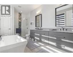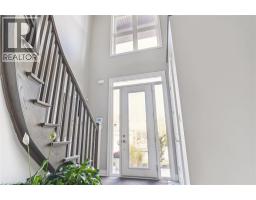 Gorgeous 2-storey home in Ancaster! Step inside and be greeted by a well-lit, open foyer showcasing a majestic winding staircase. The main level presents a conveniently located office or den, an elegant dining room, and a warm and inviting living room with a cozy gas fireplace. The luminous eat-in kitchen is adorned with top-notch stainless steel appliances and custom cabinetry. On the upper level, you'll find four generously sized bedrooms, each with its own walk-in closet. The primary bedroom is a sanctuary in itself, featuring a breathtaking five piece ensuite. Privacy is a given, as there are no rear neighbors, and the tranquil backyard boasts a beautifully stamped concrete patio. This impressive home offers 9-foot ceilings on all levels, endless upgrades and boasts just under 2800 square feet of living space. Don't miss the opportunity to visit this exceptional property (id:50886)