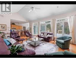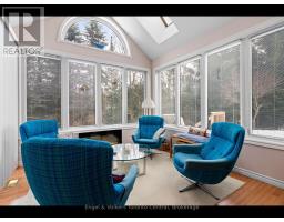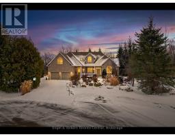 Welcome to Georgian View Estates - an exclusive, highly sought-after enclave just minutes from the Georgian Bay Club. This impressive 5 bedroom, 5 bath residence offers more than 4,000 sq. ft. of beautifully finished living space on a private, half-acre lot surrounded by mature trees. Perfectly positioned between Thornbury, Craigleith, Blue Mountain Village and Collingwood, it's also a short stroll to the sparkling shores of Georgian Bay at Council Beach. Crafted with exceptional attention to detail, the home features a timeless, maintenance free, all stone exterior and two spacious rear decks, ideal for hosting guests or enjoying peaceful outdoor moments. The expansive main deck provides a stunning setting for alfresco dining and year-round entertaining. Step inside to a bright, airy interior highlighted by cathedral ceilings in the great room, flowing effortlessly into the kitchen, dining nook and four-season sunroom. With 4 ensuite bedrooms, comfort and privacy define the home's design. The main floor primary suite boasts a walk-in closet and a luxurious 5 piece ensuite, your personal retreat at the end of the day.The fully finished lower level is built for family fun and entertaining, complete with a recreation area and pool table, cozy family room with gas fireplace, two more bedrooms and a convenient kitchenette. Dedicated, pre-wired media room. Beautiful landscaped backyard invites you to relax and reconnect with nature. Enjoy curated gardens, vibrant flower beds and a charming firepit area, perfect for intimate evenings and marshmallow roasting under the stars. Seeking a full-time residence or a weekend escape at the base of the escarpment? This home offers an unmatched blend of luxury, comfort and four-season recreation. Located close to exceptional dining, boutique shopping, ski clubs, golf courses, marinas, the Georgian Trail and world class hiking and biking routes, this property is your gateway to the very best of Southern Georgian Bay living. (id:50886)