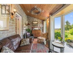 Nestled along 1,600' of the scenic Rideau River, just a stones throw from the historic Kilmarnock Locks, Fiddlers Green is a heritage treasure that embodies the beauty of country living. This meticulously restored stone home (05), with its original charm enhanced by a thoughtful 2007 addition that could be used as a granny suite. This property offers an unparalleled lifestyle for nature lovers and those who cherish tranquility. Spread across 158 private acres, this property is a sanctuary for farming, outdoor adventures, and the simple joys of life. The residence features a stunning kitchen with wood beams and granite countertops, main floor laundry, formal dining room, cozy living room with a stone fireplace, dual access to a second-floor deck. The outdoor living spaces are equally captivating. A picturesque patio with a hot tub, BBQ area, & interlock path leads to a screened-in gazebo where summer evenings can be enjoyed without interruption from insects. Swim or boat on the Rideau River. Complementing the main home is a recently built 4 bedroom cabin that offers a private retreat or potential Airbnb opportunity. A 5,800 sq ft barn with stalls, a tack room, and an open hayloft once filled with music and dancing. A large coverall building with a stone floor provides additional storage. For those seeking an authentic connection to nature and a slice of history near Merrickville, Fiddlers Green is a timeless haven offering both beauty and boundless opportunities to make your dream come true. (id:50886)