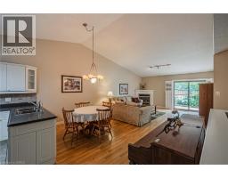 $364.27 MonthlyMAYFAIR SUBDIVISION. This is a fantastic location and one of Brantford's most desirable bungalow townhome complex's! Over 1700 square feet of finished living space and boasting vaulted ceilings with 2+1 bedrooms and 2 bathrooms. The open concept Great room encompasses a generous size kitchen with pennisula, loads of cabinetry and b-in dishwasher. The Living/dining room combo has a gas fireplace and patio door walk out to your own private deck. Convenient main floor laundry with access to a single car garage. The second bedroom on the main level is currently being used as a sitting room but could easily be made back into a bedroom The lower level is finished with a huge recreation room perfect for overflow entertaining. There is a 3 pc second bathroom with walk in shower, and a very large 3rd bedroom. Hi-efficiency F/air gas furnace and C/air are only 5 years young. This is the perfect retirement or first time buyer starter town! This small enclave of townhomes offers reasonable condo fees which cover all common area maintenance, windows, doors, roof and deck. Single car garage and private driveway plus visitor parking close by for guests. Less than a 5 minute drive to HWY 403, this is a great location for commuting. Ideally situated close to schools, parks, plaza shopping and the new Costco! (id:50886)