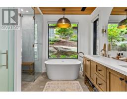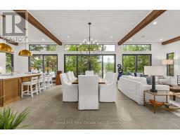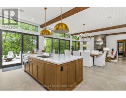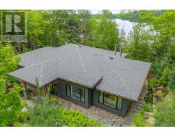 The art of perfection! Masterfully executed ultra chic new contemporary lake house on crystal clear Kawagama lake, Haliburton's largest most beautiful lake. An absolute showcase of modern design and luxury. Floor to ceiling glass, gourmet chef's kitchen with fabulous expansive island for entertaining, gorgeous master suite with spa like bath including steam shower, grande living room space with impressive stone Stuv wood fireplace with guillotine fire screen. Relax in front of the Stuv standing stick fireplace in the cozy knot free cedar muskoka room that invites the natural environs in. Stroll out to the impressive cut granite patio, extensive granite landscaping, lighting and irrigation throughout the property. Complimenting the principal residence is the double heated insulated garage with standout glass overhead doors, great for all the toys, cars or sports lounge. Sizeable lounge dock at the shore to take in the magnificent open lake views. Bring your cocktails with you for a sauna and revitalizing lake swim. Whole house generator, in floor heating, state of the art mechanicals, eight foot doors, eleven foot ceilings, drilled well, to many features to list. The attention to detail is in a class of it's own, an absolute "wow" factor! (id:50886)