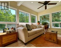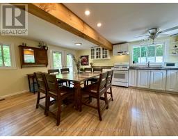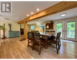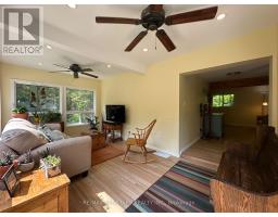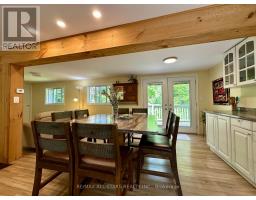 Nestled on a private, forested 1-acre lot, this beautifully renovated 3-bedroom, 1-bath home offers peaceful living with modern comforts. The open-concept main floor features a bright kitchen, dining, and living space that flows into a sunroom surrounded by serene forest views. Walk out directly from the kitchen and sunroom to a spacious wrap-around deck perfect for entertaining or enjoying quiet mornings with nature. The fully finished lower level offers a full walkout, a cozy rec room with a propane fireplace, and plenty of space for relaxation or hosting guests. Recent updates include a newer roof, furnace (2015), windows, siding, kitchen cabinetry, insulation, soffits, eavestroughs, and more all done with care and quality in mind. A major highlight is the detached 44' x 19' heated shop/studio fully finished with water and proper drainage via weeping tile, making it ideal for a home business, creative studio, or workshop. Just minutes from Crystal Lake, this move-in ready home blends privacy, comfort, and functionality in a sought-after location. (id:50886)