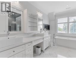 Stunning custom-built modern manor in prestigious Bathurst Manor, offering over 6,000 sq. ft. of exceptional living Space. This residence combines contemporary elegance, accessibility, and thoughtful design, set on a premium 50' x 150' fully fenced lot with a level backyard ideal for entertaining or future pool installation. The main level showcases 10-ft ceilings, engineered hardwood floors, and an open-concept layout designed for both comfort and style. The living room has a double-sided gas fireplace which overlooks the front door, while the family room has another gas fireplace opens to a gourmet eat-in kitchen featuring custom cabinetry, integrated appliances, and a large island for casual dining. The dining room has a walk-in spirit/wine display. A private den provides the perfect home office or study space. A private elevator, accessible from the grade-level garage, offers seamless mobility between all floors - an ideal feature for multi-generational living or aging in place. The upper level features four bedrooms, each with a private ensuite and 9-ft ceilings. The primary suite includes a 7-piece spa-inspired ensuite with steam shower, bidet, double vanity, freestanding soaker tub, and an electric fireplace heated floor. A separate HVAC system ensures personalized climate control, with sound-insulated laundry and furnace room for added peace. The lower level offers 12-ft ceilings which is 7.5 ft of above grade height, creating a bright living space with a walkout to the backyard, full kitchen, two bedrooms, and family room with gas fireplace - perfect for guests or extended family. The basement approximately 120 sf, has a laundry room and cold cellar. Smart home technology Includes three touchscreen keypads, multi-zone audio, and an integrated security system. Every element has been carefully curated to combine luxury, comfort, and innovation in one of Toronto's most desirable neighbourhoods. (id:50886)