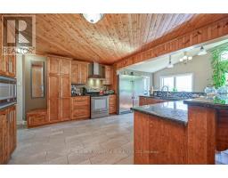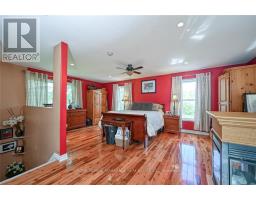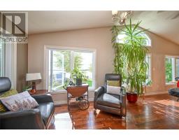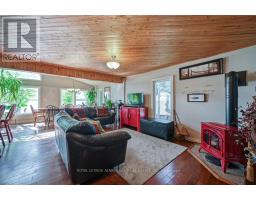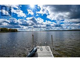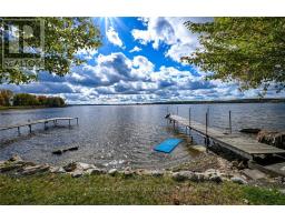 Welcome to your exclusive year-round waterfront haven in Beveridge Bay on the Rideau, perfectly situated near Perth and Smiths Falls. This property makes a striking first impression with its crisp white exterior and distinctive, bright blue roof, beautifully set against a backdrop of mature trees erupting in vibrant fall colours. A spacious, well-maintained grassy lawn leads from the house to the peaceful, secluded bay, complete with a designated fire pit area for evening gatherings by the water. Inside, the open-concept design is flooded with natural light and breathtaking views, framed by an expansive wall of windows and high ceilings. The main floor features beautiful hardwood floors and custom wood finishes, including two main floor bedrooms and a main floor 4-piece bath. The heart of the home is the kitchen, which pairs the rustic charm of a knotty pine ceiling and abundant wood cabinetry with modern amenities like dark speckled countertops and stainless-steel appliances (including a wine cooler). Relax on cool nights by the cozy propane stove in the living room, or ascend to the luxurious primary suite, a true retreat offering a soaking tub and a double-sided electric fireplace. A bright, finished lower level provides excellent additional living space. The lower level is currently being used as a fourth bedroom and there is storage, rounding out this blend of tranquil waterfront living and convenient accessibility. (id:50886)
