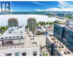 $1,278.81 MonthlyLakeview Condos Grand Penthouse in Downtown Barrie! Experience luxurious penthouse living in this spacious 2-bedroom + den, 2-bathroom condo with breathtaking, unobstructed west-facing views of Lake Simcoe and Kempenfelt Bay. Ideally located just steps to Barrie's vibrant downtown, waterfront trails, restaurants, and shops. This well-maintained, stylish suite features a bright, open-concept layout with soaring 10-foot ceilings and expansive floor-to-ceiling windows, complemented by custom blinds that flood the space with natural light. The great room opens onto a large, south-facing terrace, perfect for relaxing or entertaining, and there's a private balcony off the primary bedroom. The primary bedroom features a private three-piece ensuite that has been recently upgraded with a stylish walk-in shower, a new vanity, tiles, and fixtures. The modern kitchen offers newer Whirlpool stainless steel appliances, neutral-toned cabinetry, gleaming white quartz countertops, and a stylish backsplash. A gas hookup for a gas stove is available, and a water line to the fridge. Both bedrooms are generously sized, and the den offers a flexible space for work, a sofa bed for guests, or lounging. Enjoy the convenience of your own private in-suite laundry area with custom shelving. Storage is aplenty with a premium-sized extra-large storage locker and large closets within the unit. Year-to-date (2025) water and hydro costs are just $490.89; heated and cooled by a highly efficient and modern heat pump system. Enjoy the convenience of an owned underground parking space and the flexibility to store a bike in the shared bike room. The penthouses offer two large balconies ideal for quiet summer evenings or entertaining. Building amenities include a fitness centre, party room, and a common outdoor entertaining space on the third floor with a BBQ. Affordable luxury with stunning views in a prime location by Lake Simcoe, don't miss this rare offering! (id:50886)