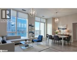 $1,278.81 MonthlyLakeview Condos Grand Penthouse in Downtown Barrie! Experience luxurious penthouse living in this spacious 2-bedroom + den, 2-bathroom condo with breathtaking, unobstructed west-facing views of Lake Simcoe and Kempenfelt Bay. Ideally located just steps to Barrie's vibrant downtown, waterfront trails, restaurants, and shops. This well-maintained, stylish suite features a bright, open-concept layout with soaring 10-foot ceilings and expansive floor-to-ceiling windows, complemented by custom blinds that flood the space with natural light. The great room opens onto a large, south-facing terrace, perfect for relaxing or entertaining, and there's a private balcony off the primary bedroom. The primary bedroom features a private three-piece ensuite that has been recently upgraded with a stylish walk-in shower, a new vanity, tiles, and fixtures. The modern kitchen offers newer Whirlpool stainless steel appliances, neutral-toned cabinetry, gleaming white quartz countertops, and a stylish backsplash. A gas hookup for a gas stove is available, and a water line to the fridge. Both bedrooms are generously sized, and the den offers a flexible space for work, a sofa bed for guests, or lounging. Enjoy the convenience of your own private in-suite laundry area with custom shelving. Storage is aplenty with a premium-sized extra-large storage locker and large closets within the unit. Year-to-date (2025) water and hydro costs are just $490.89; heated and cooled by a highly efficient and modern heat pump system. Enjoy the convenience of an owned underground parking space and the flexibility to store a bike in the shared bike room. The penthouses offer two large balconies ideal for quiet summer evenings or entertaining. Building amenities include a fitness room, party room, and a common outdoor entertaining space on the third floor with a BBQ. Affordable luxury with stunning views in a prime location by Lake Simcoe, don't miss this rare offering! (id:50886)