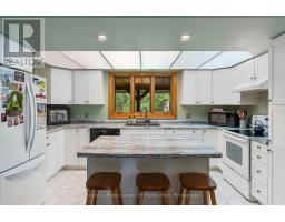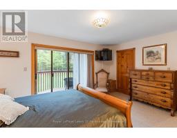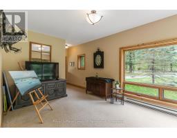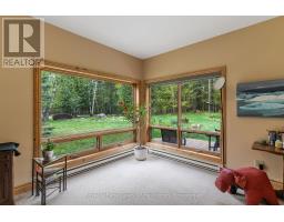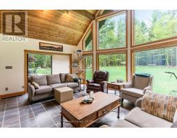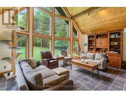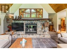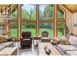Set in a peaceful, park-like setting on a level and beautifully landscaped lot, this spacious 3-bed, 3 bath, 2-storey family home offers the perfect blend of comfort, function & year-round recreation. Located just a 6-min walk to Sir Sam's Ski & Bike & within walking distance to Sir Sams Inn & Spa, this is a rare opportunity in the highly desirable Eagle Lake community. The home impresses with its charming covered porch, perennial gardens & inviting curb appeal. A stunning living room highlighted by a soaring prow front, floor-to-ceiling windows, and a striking stone fireplace walkout leads to a large deck overlooking peaceful natural surroundings and breathtaking sunsets.The open-concept kitchen and dining area is ideal for entertaining, offering generous space, excellent light & views of the surrounding forest. A bonus area on the main floor with a separate entrance offers endless possibilities as an in-law suite or home studio. Upstairs, the primary suite is a true retreat featuring oversized sliding glass doors to a private deck, skylight, and a spacious ensuite with 6ft jacuzzi tub.The walk-up lower level offers high ceilings, large rec room, workshop space, and ample storage. Features include forced air propane heating, central vac, drilled well, full septic system, and fibre optic internet perfect for remote work.Enjoy a quiet lifestyle surrounded by nature, with no immediate neighbours and access to Moose Lake part of a scenic two-lake chain is within walking distance, complete with dock access, small boat launch & a sandy, wade-in beach. A 22-ac forested parcel next door offers privacy and a natural buffer, while the sounds of loons from five nearby lakes provide a tranquil soundtrack to daily life. Located on a low-volume road with year-round access and no highway noise, the property offers ample parking & a peaceful setting rich with 14 different tree species. Just minutes to Eagle Lake Village for public beach access, gas, LCBO, groceries, and more. (id:50886)