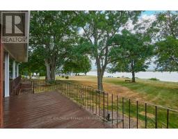 Unparalleled St. Lawrence River Views - All-Brick Waterfront BungalowDiscover one of the regions most spectacular views of the St. Lawrence River stretching upriver to the Iroquois Locks and downriver for miles. This solid three-bedroom all-brick bungalow is perfectly positioned to take full advantage of its setting, with four patio doors framing unobstructed river views and creating seamless indoor-outdoor living. Enjoy morning coffee or evening sunsets from the full-length deck, accessible from the kitchen, living room, and primary bedroom. The walk-out basement with its own patio brings you just steps from the waters edge, where Great Lakes ships pass directly in front a rare and captivating feature along with smaller pleasure craft and abundant wildlife. Inside, the open-concept living and dining room is anchored by a striking floor-to-ceiling fieldstone fireplace, perfect for entertaining. The spacious kitchen with eating area flows naturally into the main living spaces, while extensive hardwood flooring (installed in 2009) adds warmth and elegance throughout. Modern comforts include two energy-efficient heat pumps for heating and cooling, installed after an energy audit to keep utilities low (approx. $300/month). Additional updates include roof shingles replaced in 2012, a septic tank riser and filter added in 2017, and a private irrigation system drawing directly from the river. Set on a double-wide lot with licensed use of additional shoreline land, the property offers extended depth of usable space leading right to the rivers edge. The quiet dead-end road ensures privacy in a peaceful rural setting, while shops and services in nearby towns are only minutes away. Conveniently located just 60 minutes from Ottawa or Kingston and 90 minutes from Montreal, this home blends natural beauty, comfort, and efficiency in a truly unmatched riverfront location. (id:50886)