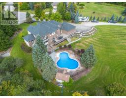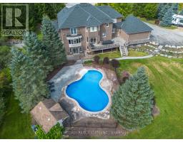 Welcome to this exquisite custom-built home, nestled in a private estate of Brookville on a stunning 5-acre property, offering over 6,000 square feet of luxurious living space. This exceptional Churchill Estates residence features 5 spacious bedrooms and 2 additional bedrooms in the fully finished walk-out basement ideal for in-law suite/nanny suite, along with 5 beautifully appointed bathrooms, and the property features a custom-built massive 3,000+ square foot custom hobby farm with mezzanine, perfect for a variety of uses, like an indoor basketball court, Private Gym Etc Step inside and be captivated by the gourmet kitchen, equipped with top-of-the-line upgraded appliances. The home is adorned with pot lights, hardwood, and crown moulding. Every bathroom in the home is either semi-ensuite or ensuite, ensuring optimal comfort and privacy for all.The primary bedroom is a true retreat, complete with a Juliet balcony that offers sweeping views of the surrounding property. An additional walk-out balcony is accessible from the den, providing the perfect relaxing space. Hardwood floors flow seamlessly throughout the home. Outdoor living is just as impressive, with a lush, well-maintained yard and a heated private swimming pool, offering a Muskoka-like experience right at your doorstep. The seller has spared no expense, investing thousands in upgrades to ensure the property is a true showcase of luxury living. This estate is the epitome of elegance and convenience, offering unparalleled amenities and an unbeatable location. It truly is the ultimate in sophisticated living and within commutable distance. (id:50886)