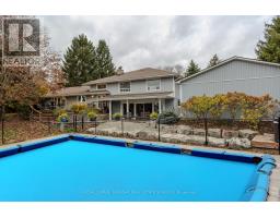 Welcome to this charming 4-level side split, originally crafted for the Grafton family in 1954. Situated on a serene 1.09-acre lot, this property boasts privacy and beauty with mature trees, a long driveway, and ample front yard space accommodating parking for 10+ vehicles, including a 20x40 garage with a lift. Perfectly located, its just 3 minutes from Dundas Valley Golf & Curling Club, 5 minutes to quaint downtown Dundas, and close to scenic trails, waterfalls, and major routes. Inside, find a bright, welcoming ambiance with hardwood throughout. The eat-in kitchen leads to a dining room with elegant coffered ceilings. The Great Room on the main level is a showstopper, featuring floor-to-ceiling windows, a wood burning fireplace, one of 5 fireplaces in the home, and an adjoining family room ideal for gatherings. Upstairs, enjoy a private primary sanctuary with views of the escarpment with a 4-piece ensuite, alongside an additional 3-piece bath with a glass shower. The lower level offers a partially finished walkup with a billiard room, which could be used as a fourth bedroom, patio access, storage, utility room, and a rough-in for a washroom. Outdoors, a private backyard oasis awaits, complete with a hot tub, a recently painted (2024) in-ground pool, and expansive views of the escarpment and golf course. New furnace installed in 2022. Don't miss this exceptional Greensville home! (id:50886)