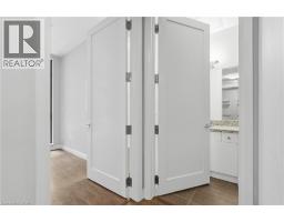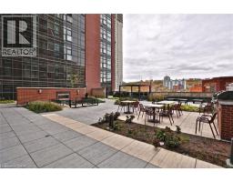 Welcome to the re-imagined residences of Royal Connaught, centrally located in the heart of downtown Hamilton and within walking distance of boutique restaurants, trendy shops, and GO Transit. This beautifully designed 1-bedroom, carpet-free unit features an open-concept layout with a large living area, granite countertops, in-suite laundry, a walk-in closet, and soaring 9-ft ceilings. Step out onto your terrace balcony to enjoy breathtaking escarpment and city views. From the opulent grand lobby to the sprawling courtyard with BBQs, lounge seating, and gardens, this historic building offers it all, including on-site security, concierge service, a fitness centre, media room, and party room. With a Walk Score of 97, this is downtown living at its finest. Private, underground parking available for additional charge. (id:50886)