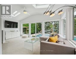 Charming Detached Bungalow in Southwest Oakville. Situated on a spacious 65 x 122-foot lot in one of Oakville's most coveted neighborhoods, this meticulously cared-for raised bungalow offers the perfect blend of comfort, seclusion, and convenience. Surrounded by towering trees and custom-designed homes, this property provides a peaceful escape, ideal for both relaxation and entertaining. Step outside and immerse yourself in your own private backyard haven. At the heart of it all is a stunning oversized saltwater inground pool, complemented by a delightful dining cabana and a cozy sitting area with an outdoor TV, perfect for hosting summer gatherings. The lush, tree-lined yard ensures complete privacy, making it the ideal setting for a family, empty-nesters, or anyone seeking a tranquil retreat. Inside, the home boasts three bedrooms, one is currently serving as an office for working from home which could easily be transformed into an ensuite to enhance the primary suite. The inviting living room, centered around a charming wood-burning fireplace, creates a warm and welcoming ambiance perfect for family gatherings. The dining area offers generous space for entertaining and natural light pours into the expansive family room, which offers stunning views of the backyard sanctuary through its wall-to-wall windows. Nestled in a family-friendly community with top-rated schools nearby, this property is an exceptional choice for those looking to downsize or raise a family in one of Oakville's most desirable areas. If the beautifully maintained bungalow isn't what you need, this spacious lot presents an exceptional opportunity to build your very own dream home. Nestled among multi-million dollar custom residences, the potential to design and construct a home that perfectly suits your vision is boundless. Seize the chance to make this charming bungalow - or your future custom home -yours, in a location where comfort, privacy, and limitless potential come together. (id:50886)