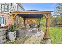 Steps to fairy Lake in popular family friendly desirable neighborhood! Beautifully updated four bedroom with potential for a fifth bedroom in loft space. One of a kind floor plan with fabulous open concept design, showcasing stunning hardwood floors and neutral decor throughout. The kitchen features a large centre island/breakfast bar with spalted maple countertops plus stainless steel appliances. The living/dining room is large and overlooks the very spacious family room boasting a pretty fireplace (2024) and views of the backyard. There are four bedrooms on the second level and a fifth room in the loft space, which is currently used as an office/den but could easily be a fifth bedroom. Both full bathrooms have been beautifully updated. The garden beds have all been done plus the yard is huge with room for your fire pit, gazebo (2024), patio, 20x12 garage style shed and still tons of space to play. There is a single car garage plus a double wide driveway for lots of room for your vehicles. Shingles 2021, Furnace and air conditioning 2019, many updated windows and eaves are 2018, front walkway and back patio 2023. One of the prettiest and most popular neighbourhoods in Acton with maturity and Lake access! (id:50886)