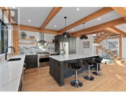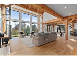 Welcome to 113 Slabtown Rd W, a modern timber frame home in one of the area's most charming and quietly sought-after enclaves. Thoughtfully designed and built with timeless craftsmanship, this nearly 5,000 sq. ft. home balances luxury with an inviting warmth that makes everyday living feel relaxed and comfortable. Soaring ceilings, exposed beams, and expansive windows create a sense of openness while drawing in natural light throughout the day. The main living spaces flow seamlessly-perfect for gathering with family, hosting friends, or simply settling into a slower pace. The kitchen, living, and dining areas are grounded by natural materials and thoughtful details, while multiple walkouts connect you effortlessly to the outdoors.The private primary suite offers a calming retreat with a serene ensuite. The main floor is complemented with an upstairs with 2 additional bedrooms and flexible spaces suited to work, hobbies, or guests. The fully finished lower level provides additional room for living and entertaining, complete with a large mudroom, an additional bedroom and direct garage access for practical day-to-day living.There is also a bonus room that would make a great sauna or ski tuning room. Outside, the setting is something truly special. Slabtown is a small, welcoming community-rural in feel, yet just a 5-minute drive to Thornbury's highly desirable community school, shops, dining, marina, and conveniences. Step outside your door to the Slabtown Dam for a summer swim or paddle the Beaver River at sunset. Ski clubs, golf, hiking trails, and Georgian Bay are all close by, making four-season adventure part of your rhythm.This is a home where mornings are slow, evenings gather everyone at the table, and the natural beauty of the Blue Mountains shapes the way you live. Warm, grounded, and quietly luxurious- 113 Slabtown Rd W offers a lifestyle that feels both connected and comfortably at ease. (id:50886)