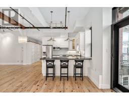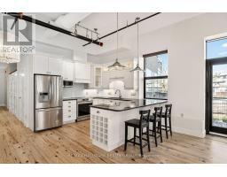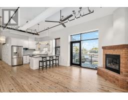 $662 MonthlyONE OF A KIND CONDO overlooking the Mississippi River in the heart of Almonte! Welcome to Thornburn Mill, a historic and highly sought-after building that blends timeless character with modern comfort. This stunning 1 bedroom, 2 bathroom corner unit offers 1,177 sq. ft. of beautifully renovated living space featuring soaring high ceilings, natural rustic hardwood floors, and an abundance of natural light throughout. Step inside to a bright, welcoming entrance leading to the primary bedroom, complete with a custom walk-in closet and a luxurious 5-piece ensuite showcasing double sinks with granite counters, a glass shower, a deep soaker tub, and in-suite laundry. The grand hallway leads to a wall full of convenient storage, perfect for keeping everything organized, as well as a stylish powder room ideal for guests. The open concept living area is perfect for both entertaining and everyday living. A custom kitchen features newer stainless steel appliances, granite countertops, custom cabinetry, under-cabinet lighting, and a sit-up counter. The spacious living room centers around a cozy fireplace and large windows with breathtaking river views. The extra living space is generous and versatile, easily spacious enough for a dining room & a home office, den, or a future guest space. Step onto your private wraparound balcony, a rare feature that provides privacy and stunning views of the river and surrounding greenery, perfect for relaxing or entertaining. Additional highlights include one conveniently located parking spot, a large storage locker, and a pet-friendly, smoke-free building that radiates charm and tranquility. Located just steps from Almonte's vibrant downtown, you'll enjoy easy access to shops, restaurants, cafés, scenic walking trails, and the town's historic beauty. This exceptional condo combines heritage character with modern finishes, offering a truly unique living experience. (id:50886)