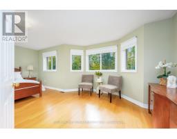 Set on a quiet, family-friendly cul-de-sac and backing onto a coveted ravine, this immaculate, 2,368 sq. ft., one-owner home presents a rare opportunity to own a meticulously maintained property. Pride of ownership is evident in every detail, both inside and out. Situated on a premium ravine lot with a curbed driveway accommodating six vehicles, the property features beautifully landscaped gardens, a stone walkway, covered front porch, and an inviting foyer. The main and upper levels showcase gleaming hardwood and ceramic flooring, no carpeting, with an open and airy layout ideal for family living and entertaining. Elegant formal living and dining rooms are enhanced by decorative pillars, while the spacious kitchen and adjoining family room - complete with gas fireplace - overlook the breathtaking ravine. A dedicated main floor office, powder room, and laundry/mudroom with direct garage access enhance the home's functionality and convenience. Upstairs, the primary suite is a serene retreat with large windows overlooking the scenic ravine, a walk-in closet, and a 5-piece ensuite. There are three additional bedrooms - two with walk-in closets - and a 4-piece bath. Extending the living space is the finished basement with a party-sized rec room, large exercise room, multiple storage rooms, utility space and a cold cellar. The expansive South facing, sun filled backyard includes gated access to the ravine, private cedar deck, and lush gardens. Located steps from the scenic Hungry Hollow Trail system, and minutes to schools, parks, shops, restaurants, and major commuter routes - this home truly has it all. As a bonus, the driveway is extra- long and can fit 6 cars in addition to the 2- car garage! New driveway 2022, driveway sealed 2025, beautiful stone front walkway 2022. (id:50886)