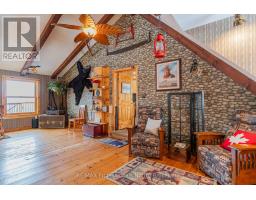 Truly a Road Trip Destination! Haliburton County Commercial building and lot for sale! The Owner is looking to retire and here is your opportunity to own one of the most recognized commercial buildings in the area. Nestled and located within West Guilford's commercial and community's recreation hub, this 3,762 sq. ft. building (excluding the basement) has an incredible retail location! The short 12 minute drive from Haliburton, easy access off Hwy. 118, and being located on the direct path to the Kennisis Lake/Redstone tourist area, make this a popular spot for local clientele and cottagers/visitors alike. The impressive log and frame building has been the home to the iconic Cottage Country Log Cabin and its well-known owner for over 20 years. The 1,955 sq. ft. main floor is currently packed with hand-chosen giftware, home wares, and quality-custom themed lake clothing and hats attracting and servicing an impressive, loyal and long-standing clientele. The upper area consists of a large open rec room area that was one also part of the retail space, plus a spacious 2-bdrm. living quarters, allowing the new owner to live on the premises in style. The living area includes 2 bdrms., a combined kitchen/eating room with walkout to a large deck, living room , and sunroom. In addition to the 2 levels there is an expansive 1,758 sq. ft. basement that offers office space, storage and stock area with easy access. Extra parking behind the building leads to the basement for convenient stock deliveries. The relative 1.2 acre lot has excellent expansion possibilities and versatile zoning providing for multiple uses for business and office opportunities. Thinking of a restaurant? Check out the additional back deck for a great outdoor food experience. This iconic building and location will not disappoint. (id:50886)