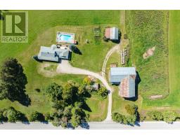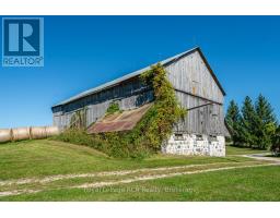 Scenic 100+/- acre farm, organic for over 20 years, features a lovely stone bungalow, classic L-shaped bank barn, older shed, garage/workshop, and a private in-ground pool area.The Quality Home, built in 2000, boasts a covered wrap-around porch in a picturesque setting with double car garage and durable steel roof. Inside, the spacious layout includes a large eat-in kitchen with island and windowed nook capturing the views, a bright living room with wood fireplace, 3 bedrooms, full bath with cheater ensuite to the primary bedroom, laundry and 2-piece bath. The lower level has lots of storage, an office, walk-up to the garage, plus a 2-bedroom in-law suite with bathroom, living room, walkout to patio, and room for a kitchenette. Highlights include abundant windows, newer appliances, central vac and central air. Outdoors, enjoy the fenced in-ground pool with patio and retractable awning, perfect for gatherings. The bank barn is ideal for cattle and hay storage, plus there is a shed and garage/workshop. Mature trees, fenced pastures, and scenic fields complete this peaceful setting just minutes from town. Grey County lists the property at 100.14 acres while tax bill states 98.9 acres, with approximately 55 workable. (id:50886)